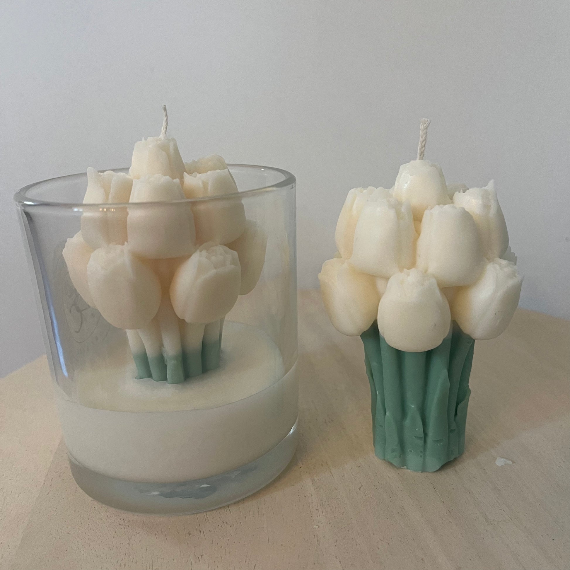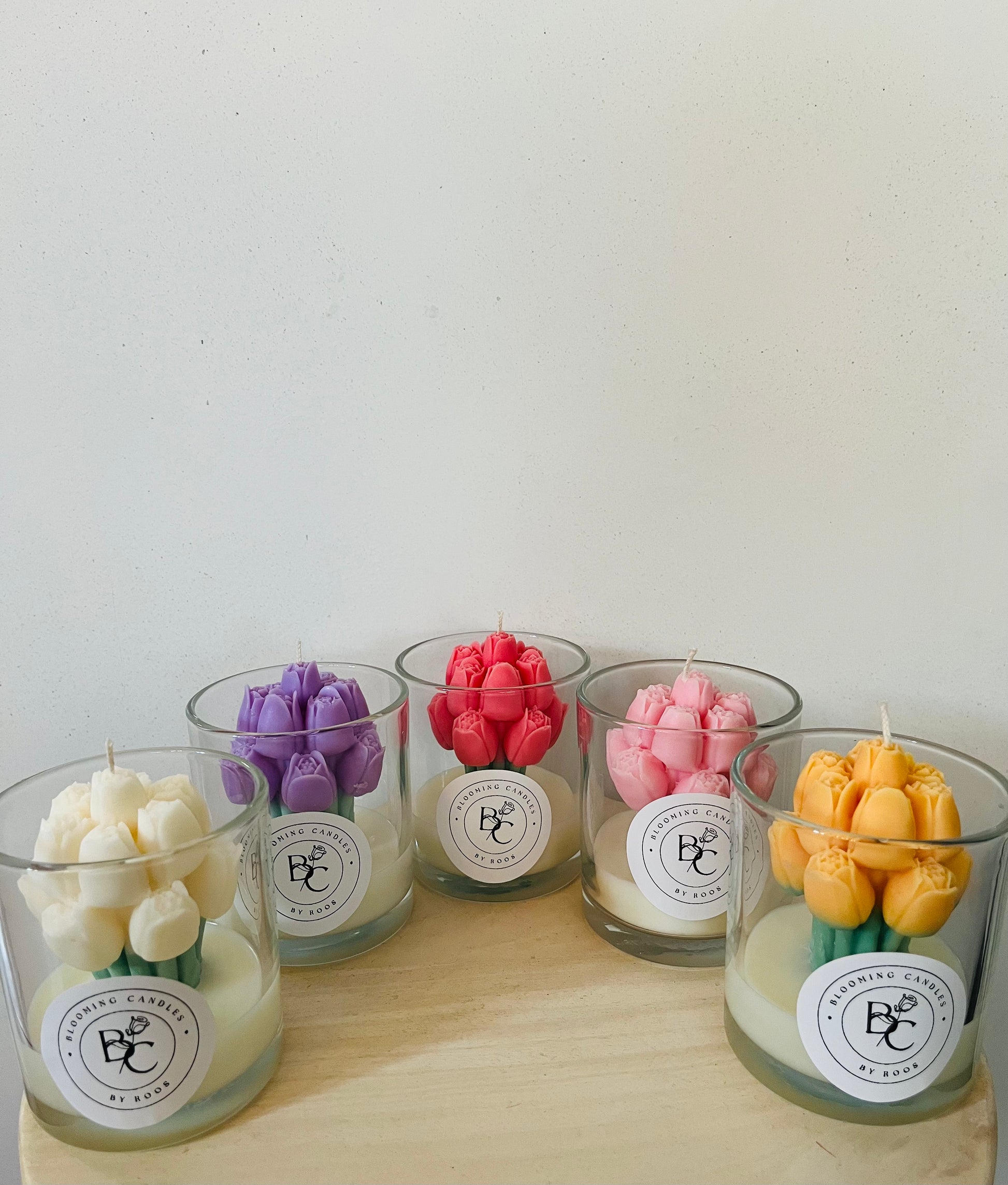 Brengt de lente in huis met deze mooie kaars: a bouquet of tulips. De kaars is te koop in 5 kleuren: wit, rood, oranje, lila en zacht roze. Hij is handgemaakt met 100% soja was en wordt geplaatst in een transparant potje.