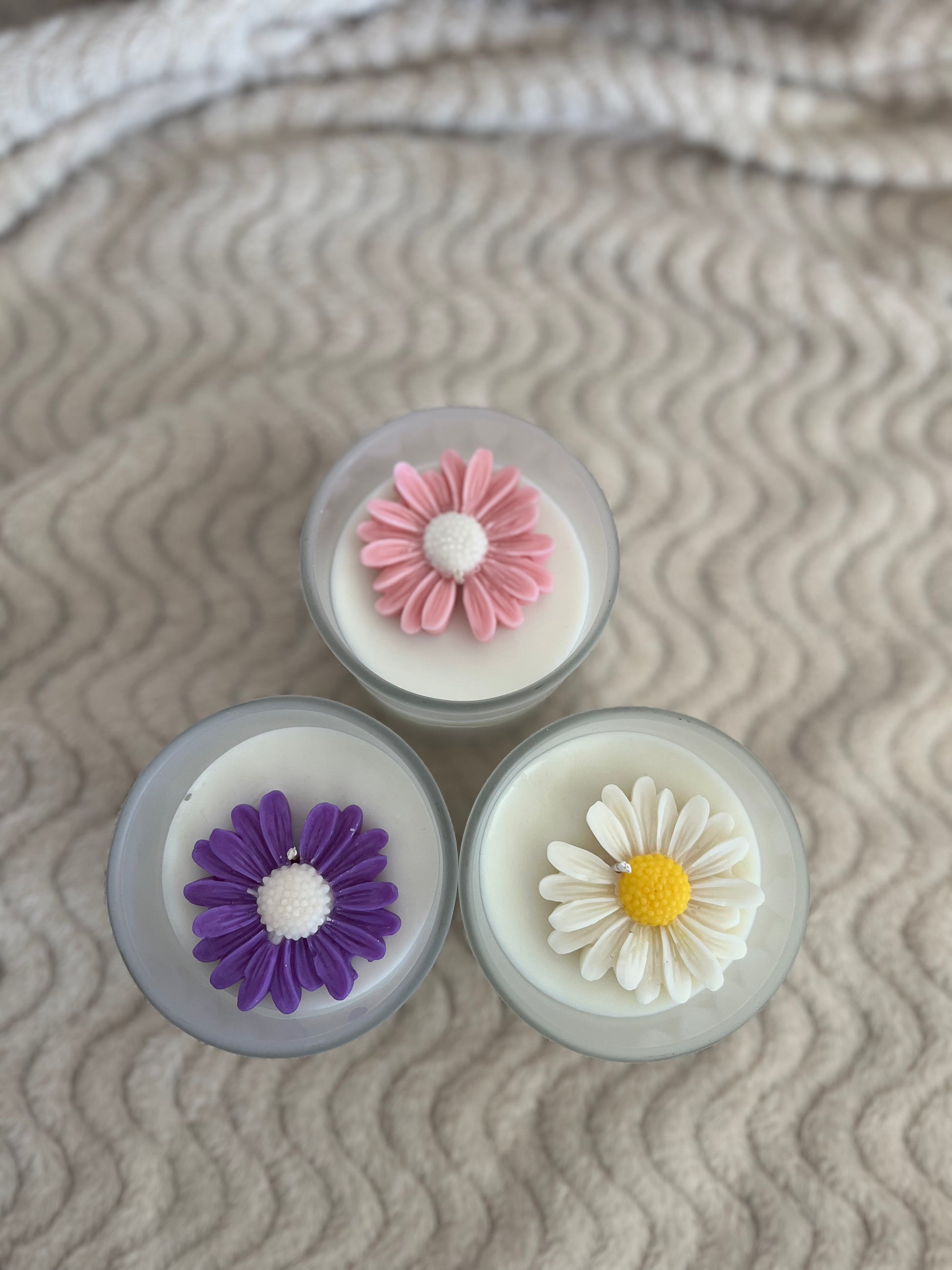 The Daisy is gemaakt van 100% sojawas. Dit betekent dat de kaars brandt zonder schade aan te richten aan je gezondheid en aan het milieu. Hij is met zorg handgemaakt. Geinspireerd door de Daisy. Hij is beschikbaar in 3 kleuren, de orginele wit/gele bloem, roze/wit en paars/wit. Zet hem neer ter decoratie of steek hem bij speciale momenten aan.